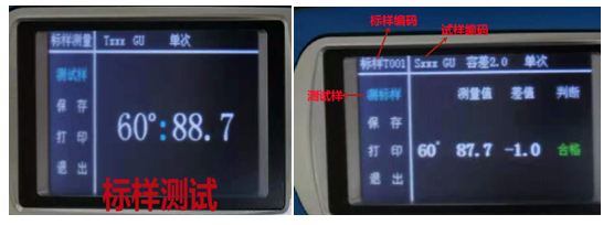 統(tǒng)計(jì)模式:具有統(tǒng)計(jì)評估功能的測量模式,能對單個(gè)樣品進(jìn)行多次測量??膳c標(biāo)樣比對差值。此操作是指用于設(shè)定標(biāo)準(zhǔn)樣品的光澤度值作為標(biāo)準(zhǔn)值,定標(biāo)后儀器每次測試的值都會(huì)與標(biāo)準(zhǔn)值做比較,然后超出容差范圍,則儀器測試界面會(huì)顯示不合格,在容差范圍,則儀器測試界面會(huì)顯示合格。