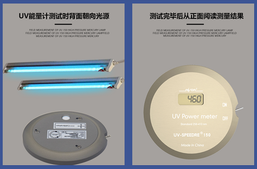 UV-150能量計,適用于測試UV汞燈的紫外線能量值,波長范圍250-410nm,中心波長365nm。感光孔在背面,可承受更高溫度,材質(zhì)為均光膜。