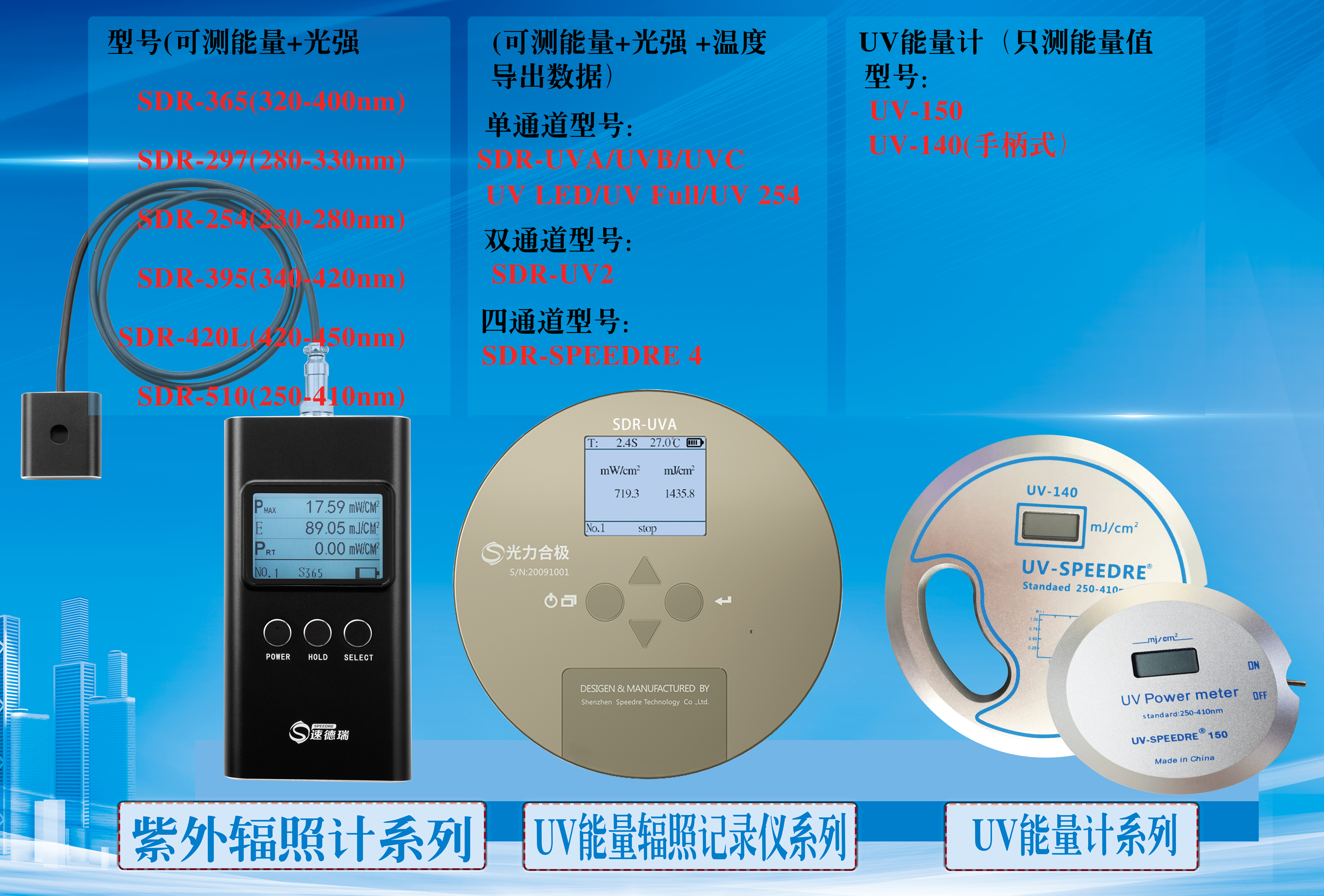 UV能量計(jì)又稱紫外能量檢測儀是一種用于測試紫外固化光源能量和強(qiáng)度的儀器,被廣泛應(yīng)用于各個(gè)行業(yè)。深圳市速德瑞是專業(yè)生產(chǎn)UV能量計(jì)的廠家,從2012年即從事此行業(yè)的研發(fā)與生產(chǎn),目前公司有UV能量輻照記錄儀系列(圓盤式)、紫外輻照計(jì)(探頭分離式),專業(yè)用于檢測各種光源的能量和強(qiáng)度值。產(chǎn)品一經(jīng)推出,廣受好評,在行業(yè)內(nèi)有口皆碑。在收獲好評的同時(shí),也有客戶關(guān)于UV能量計(jì)在使用過程中出現(xiàn)的幾個(gè)現(xiàn)象發(fā)出了一些疑問,下面就出現(xiàn)頻率較高的幾個(gè)問題進(jìn)行統(tǒng)一匯總。