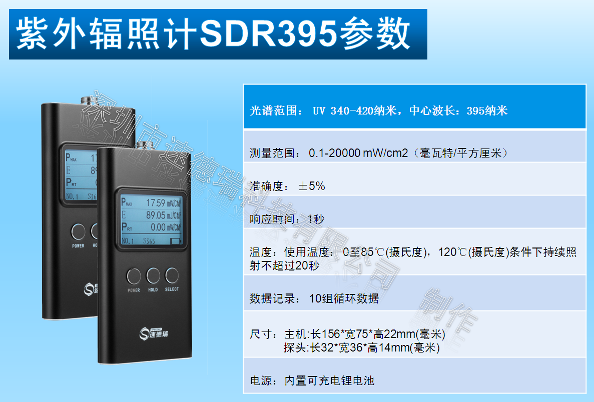 SDR-395紫外輻照計(jì)是專業(yè)用于UV LED光源的功率和能量檢測(cè)的儀器。具有寬光譜響應(yīng),可測(cè)試365nm、375nm、385nm、395nm、405nm等各個(gè)波段的UV LED光源。儀器具有智能統(tǒng)計(jì)功能,可同時(shí)顯示能量值、測(cè)量時(shí)長(zhǎng)、功率實(shí)時(shí)值及功率最大值,還可以顯示功率曲線。因此,SDR-395紫外輻照計(jì)在市面上十分受歡迎,被客戶廣泛應(yīng)用于UV曝光、UV固化、UV平板打印、光通訊等行業(yè)。