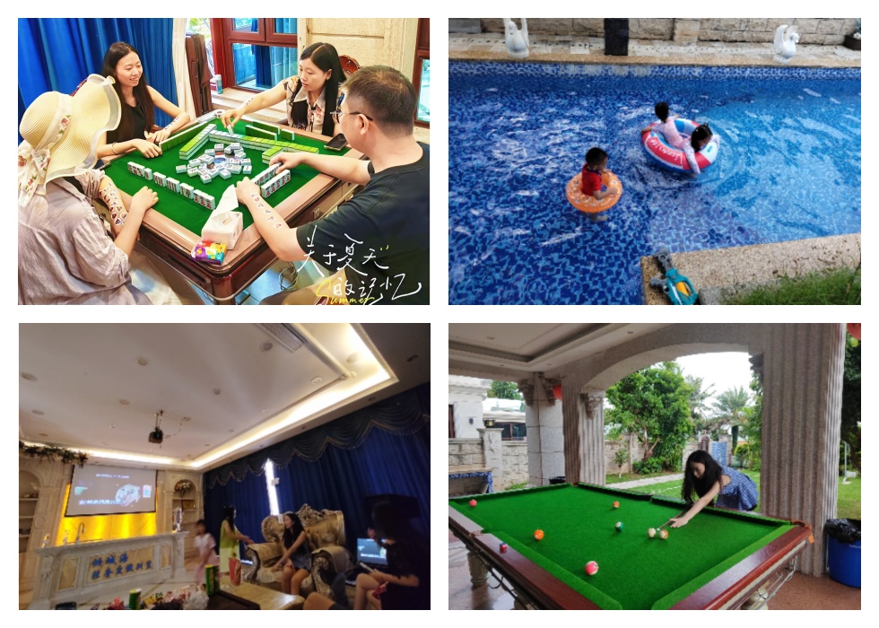 團(tuán)建團(tuán)建,當(dāng)然少不了各式各樣的集體娛樂(lè)活動(dòng)。大人和小孩在泳池或海邊玩耍嬉鬧、麥霸同事在KTV開個(gè)人演唱會(huì)、臺(tái)球桌上白球的精準(zhǔn)走位以及凌晨十二點(diǎn)麻將桌上的微型江湖……在這里的每一分鐘,都彌足珍貴。