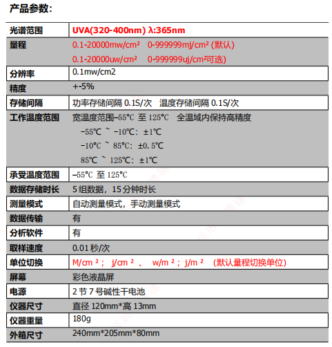 1. 可同時(shí)測試UV能量和UV光強(qiáng)、溫度