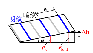 所以,當(dāng)被檢元件的兩個面不完全平行,存在楔角時,沿楔角方向,元件的厚度逐漸增大,相應(yīng)的光程差也逐漸變大,沿楔角方向就會產(chǎn)生間隔分布亮暗條紋。楔角越大,條紋越密集。