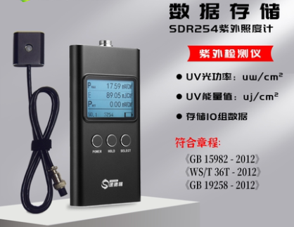 對使用中的紫外線燈應(yīng)3~6個月用紫外線輻射照度儀作一次強度檢測,發(fā)現(xiàn)強度不合格的燈管要及時更換。用深圳市速德瑞生產(chǎn)的SDR254紫外線輻射照度儀每年作一次計量標(biāo)定,以保持準(zhǔn)確性。監(jiān)測時,必須按照《消毒技術(shù)規(guī)范》中的測定條件溫度20℃以上,相對濕度小于60%,以開燈5min后的穩(wěn)定強度為紫外線殺菌燈的輻射強度。也可用紫外線輻射強度化學(xué)指示卡測定,將指示卡距燈管1m處照射1min,光敏涂料由白色變?yōu)樽霞t色,與標(biāo)準(zhǔn)色塊相比,便可知燈管輻射強度。