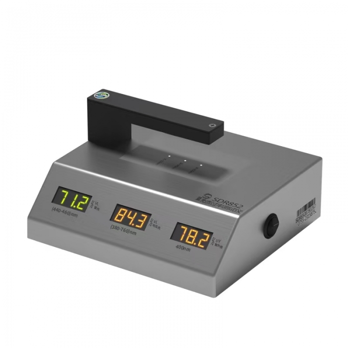 選擇防紫外線產(chǎn)品時,消費者應(yīng)該注意產(chǎn)品的標(biāo)簽和說明。除了查看是否有“UV400”標(biāo)識之外,還可以詢問產(chǎn)品的防紫外線指數(shù),或者使用專業(yè)的檢測儀器來檢查。推薦使用速德瑞SDR852透過率測試儀,這款儀器不僅可以檢測UV400的透過率,還可檢測藍(lán)光440nm-460nm,中心波長450nm以及可見光380nm-760nm,中心波長550nm的透過率。儀器采用不銹鋼臺式設(shè)計,外觀精美,利于被測物放置,操作方便。