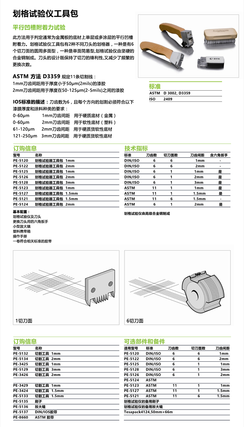 BYK百格刀劃格法是一種平價單涂層或多涂層料附著力的簡單易行的方法